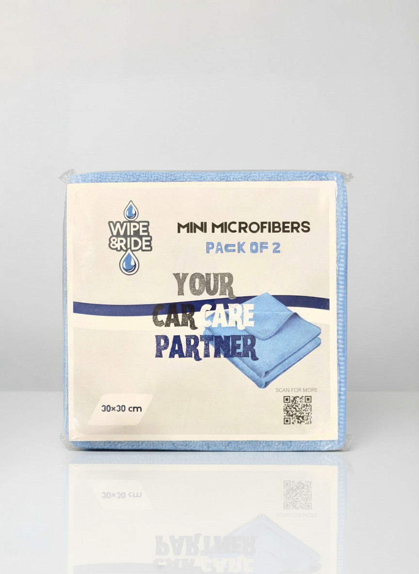 The Wipe & Ride Mini Microfiber Pack is designed to make interior car care simple, effective, and safe for delicate surfaces. Each pack includes two premium microfiber cloths, perfectly sized at 30 × 30 cm for easy handling and precision cleaning. These soft, high-absorbency cloths are ideal for wiping dashboards, screens, trims, and other interior surfaces without leaving scratches or lint. They are also perfect for applying interior polishes, dressings, and cleaners, ensuring a smooth and even finish. Compact yet highly efficient, the Wipe & Ride Mini Microfiber cloths are a must-have tool for maintaining a spotless and well-detailed car interior.